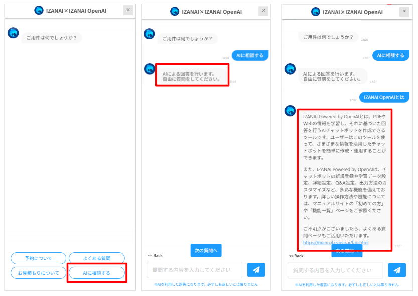 1.質問タイプ「OpenAIボット」を選択します。