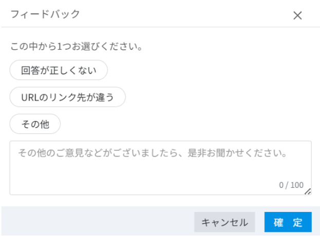 ![]() フィードバック送信ネガティブ評価を押下すると画像のフィードバック画面が表示されます。